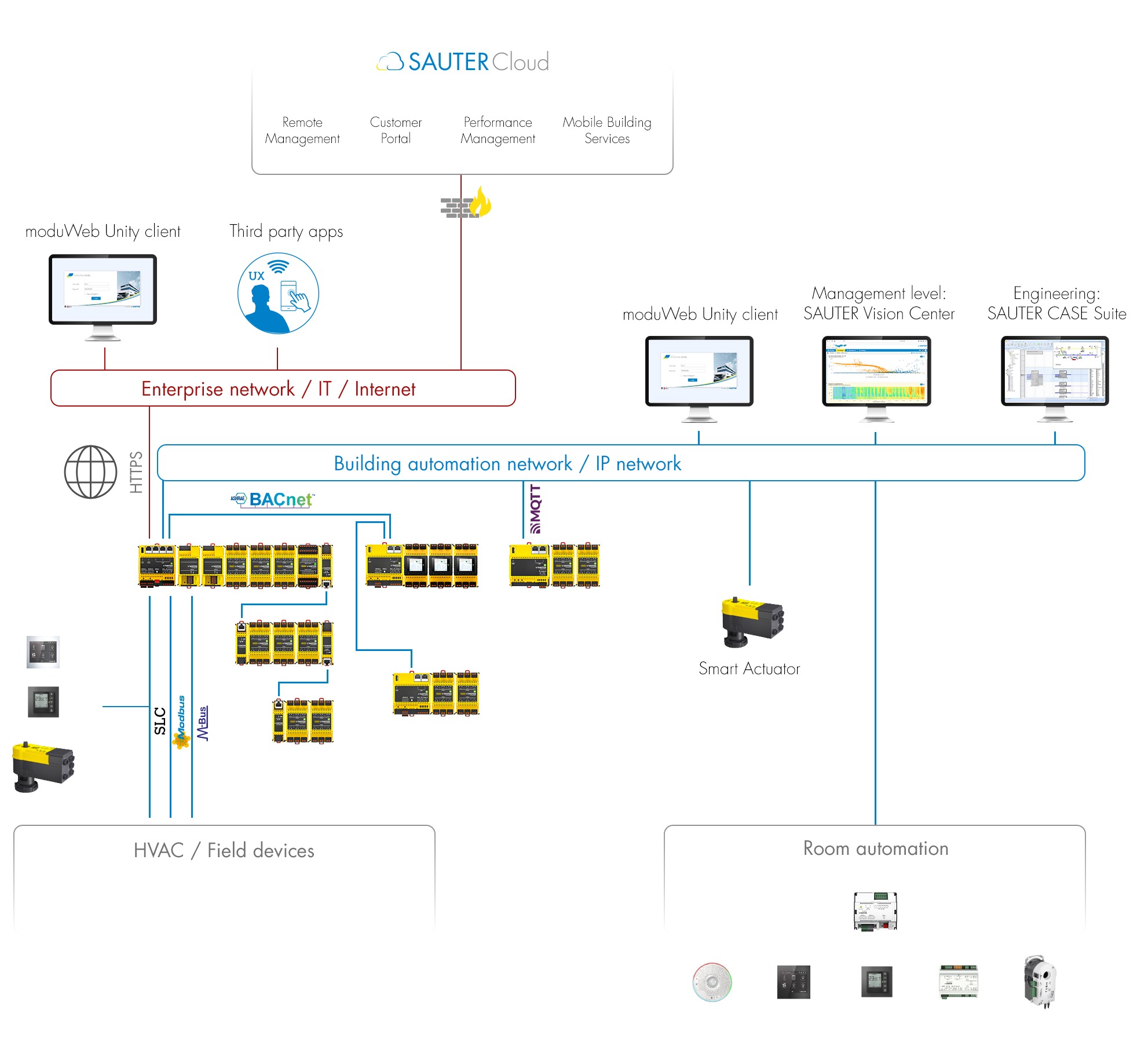 Con cicli di vita di diversi decenni, anche la tecnologia più avanzata di un edificio invecchia. modulo 6 protegge gli investimenti dei clienti consentendo un rinnovamento graduale dei sistemi esistenti. I vecchi sistemi possono essere aggiornati in diverse fasi con modalità economicamente favorevoli e senza interruzioni del funzionamento. Inoltre, è possibile riutilizzare ed espandere i programmi appartenenti alla generazione del sistema SAUTER modulo 5 – questi non solo possono essere importati sul modulo 6 ma possono anche completare le proprie attività in parallelo e separatamente in nuovi programmi. Pertanto, modulo 6 è retrocompatibile per quanto riguarda i programmi e le reti, integra le proprie installazioni e quelle di terze parti e crea un ponte con l’era del cloud e dell’ IoT – pronti per il futuro!